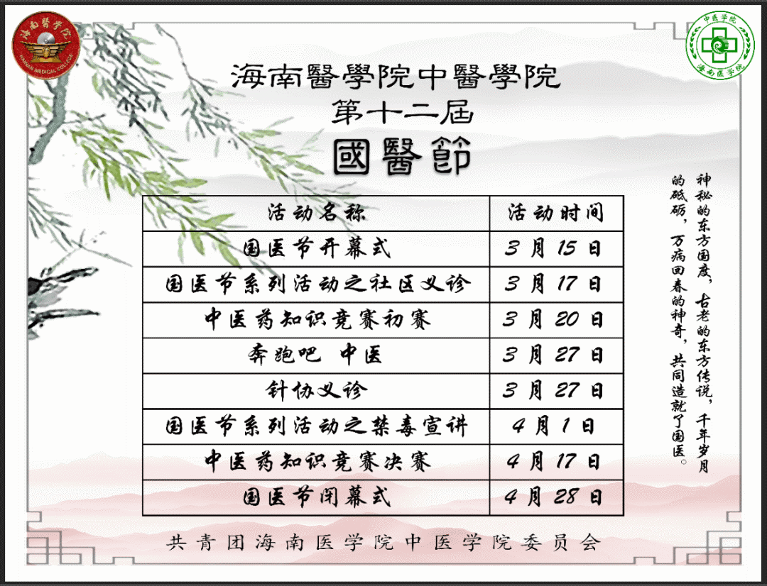 海南医学院中医学院第十二届国医节于2021年3月15日下午17:40在风
