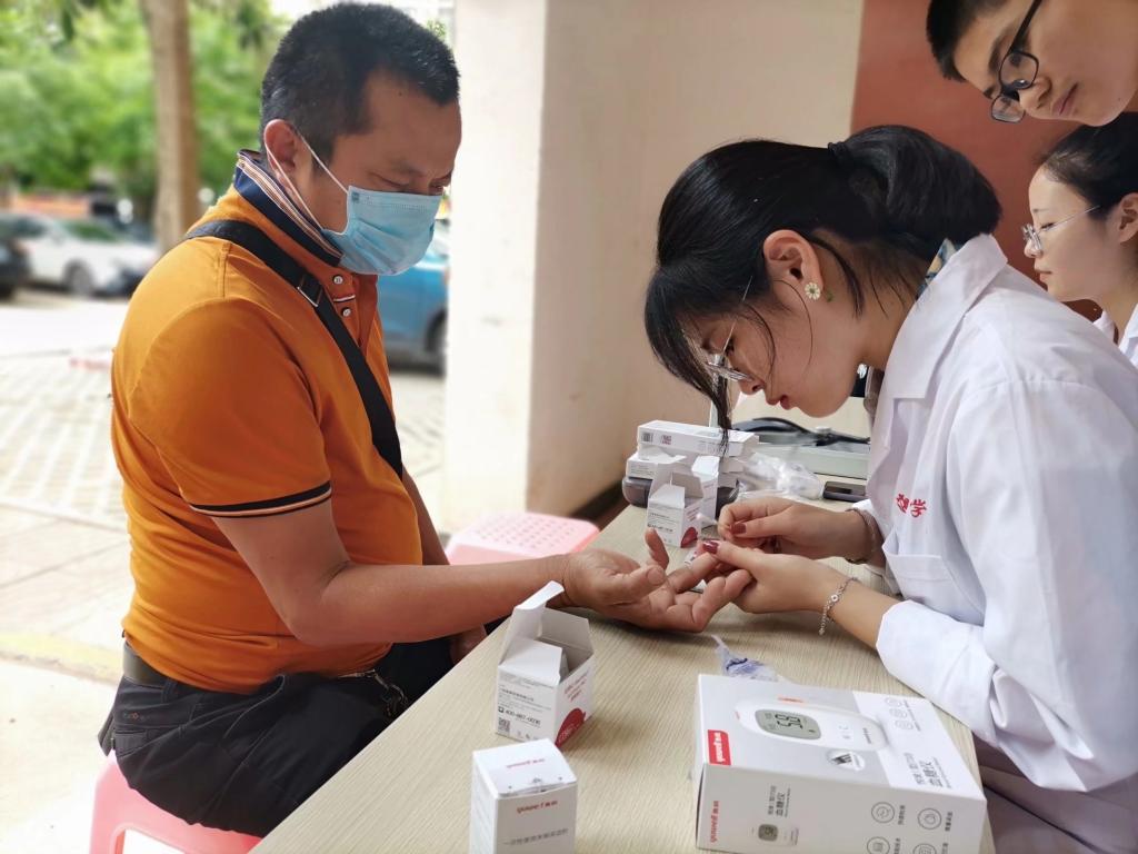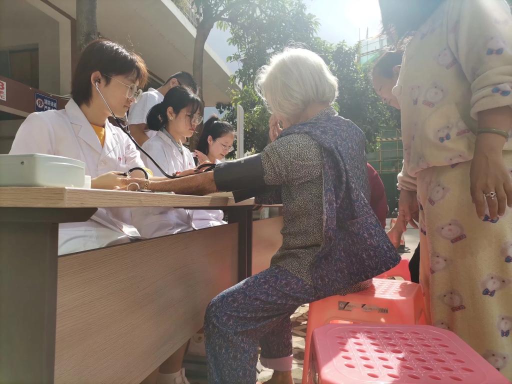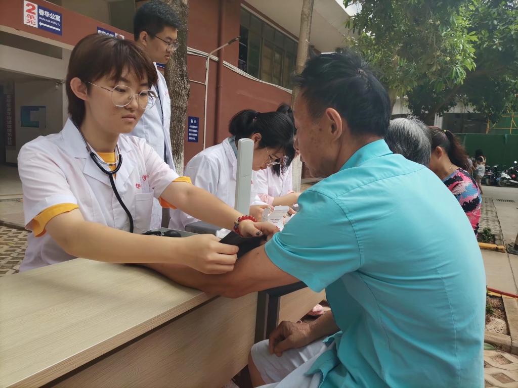 社区义诊送健康,真情服务暖人心。为关爱居民身体健康,弘扬中医传统文化,建设美好中国。在这个建党一百周年里,跟党走,学习党史强化信念,更加有力的参加志愿服务活动海南医学院中医学院青年志愿者协会在4月11日组织志愿者来到春华公寓进行了义诊活动。