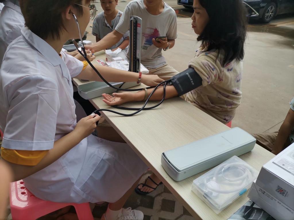 志愿者们积极的摆好桌子,期待居民们的到来。相关负责人也已做好宣传。许多居民也都想要了解自己的血糖血压情况,都在积极配合来进行检测。志愿者们操作简单的仪器,对每位居民进行恰到的人文关怀。志愿者在测血糖之前需要了解居民是否吃过早餐,而且在测血糖过程中会有出血的情况。于是“吃早饭了没啊”“什么时候吃的呀”,“来,您按一下棉签”,简单的问候不仅能拉进志愿者与居民之间的距离,也能更好的帮助检测。在测完血糖血压后,志愿者会告诉居民们他们的血糖血压情况,偏高或偏低都会耐心的告诉他们如何改善。血压血糖偏高的话,要降低盐的摄入,戒烟戒酒多运动。当然这也是预防高血压血糖的方法。