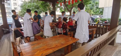 本次义诊服务内容包括测量血压、测血糖、中医把脉、手诊、面诊,针灸推拿等,我们采用多种多样的技术来为坡博社区的居民服务。因为此次活动在社区,很多老人深受中医文化的熏陶,相信中医,所以纷纷带着自己的家人前来。我们一一为其仔细的检查,引导他们健康生活。居民纷纷表示认同,尽管从早上忙到日中很累,但我们还是觉得很开心,很满足。