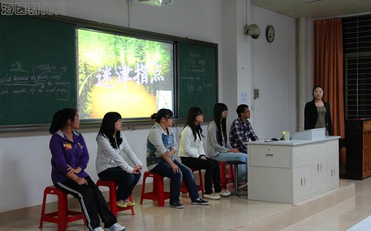 首先由王玉喜同学对英语四级学习经验进行总的概括。他强调英语学习要有自己的计划,并且要扎实地去完成。接着由其他几位同学就四级考试中的各个板块作具体地分析了其各自特点并将自己的学习经验与现场同学进行了交流。其中王露同学为了让大家能真正了解做选词填空的方法,特意挑选了一道真题进行具体讲解。在嘉宾的细致讲解之后进入了此次活动的第二个环节:迷津指点。同学们积极地进行提问,台上的嘉宾针对不同同学的具体情况做出了详细的解答。最后各位嘉宾向在场的各位同学送上诚挚的祝福,希望同学们都能顺利地通过六月份的英语四级考试。