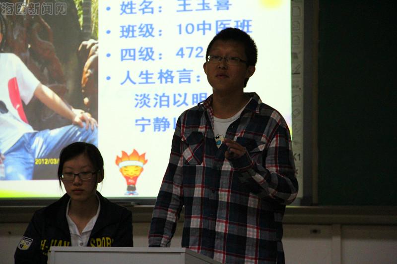 海南医学院中医学院英语四级经验交流会于3月24日晚8:00在2-101成功举行。中医学院辅导员卢果老师、杨帆老师出席了此次讲座。此次活动邀请10级中医班王玉喜,10级中医养生班郭婕,10级中西班张达凤,10级针推班徐雨虹,09级中医班陶如,09级针推班王露作为嘉宾为同学们讲解四级中各版块的备考技巧。