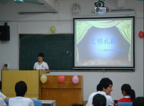 基于这些问题, 09中西医班又精心筹备了一次以“文明礼貌”为主题的班会,倡导大家对自己的言行举止加以规范,礼貌待人,文明行事。只有大家都讲文明,懂礼貌,我们生活的世界才能更加和谐,更加美好。班会只是一个形式,要达到真正的文明礼貌,还需在实际生活中对自己严格要求,摒除陋习,养成文明礼貌的好习惯。这次主题班会让我们发现自己正在逐渐远离文明,远离礼貌,并让我们意识到文明礼貌的重要性,让我们在后来的生活中及时发现,及时纠正自己的不文明,不礼貌的言语行为。在不断的反思与纠正中,我们向着文明礼貌的方向不断前进,越走越近。