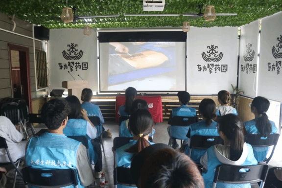 在此过程中,团队深入学习了解了许多黎药,如可以治疗肝病的叶下珠、可以治疗胃热吐血的见血清、可以治疗风湿痹痛的马鞍藤等等,在兰花种植基地,我们还见到了各种各样的石斛,学习到了不同石斛在黎医治病中的作用。团队还跟随非遗藤灸传承人符致坚老师学习了黎医的基本针刺手法、竹罐疗法等治疗方法,并且进行了针刺的实际操作练习,为接下来的活动打下了坚实的基础。