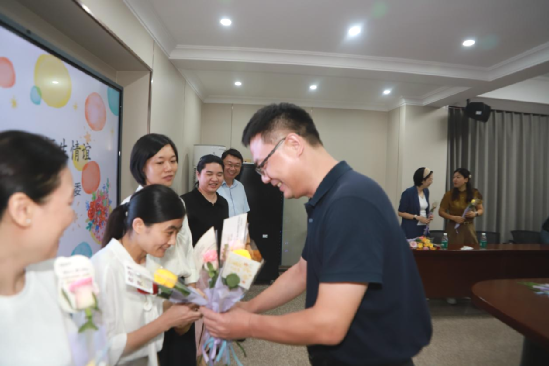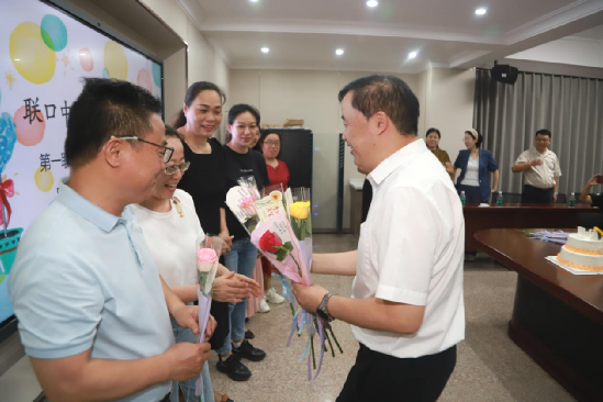 活动伊始,一场温馨的献花仪式拉开了庆祝的序幕。校领导将鲜花送到教师手中,衷心感谢他们长期以来在教育教学岗位上的辛勤耕耘和无私奉献。一束束鲜花承载着深深的祝福,表达了学校领导对教师们工作的高度认可与关怀。