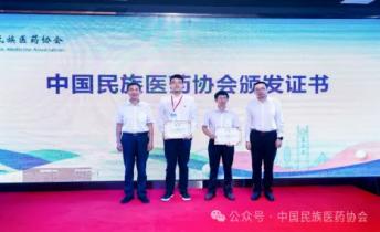 会上,中国民族医药协会会长李文亮与黎医药分会会长谢毅强为新增副会长颁发证书