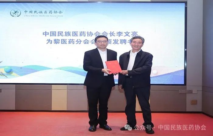 会上,中国民族医药协会会长李文亮为新当选的黎医药分会会长和常务理事颁发了证书。