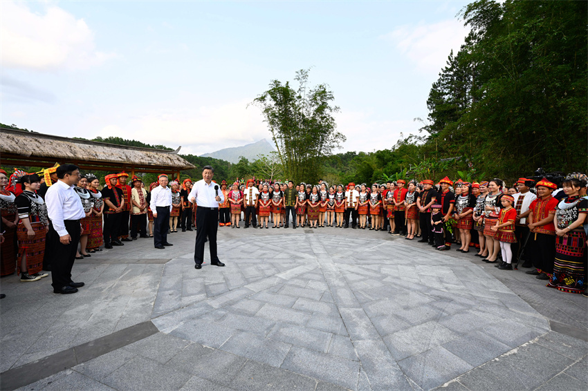 4月11日下午,习近平在五指山市水满乡毛纳村,同当地干部群众亲切交谈。