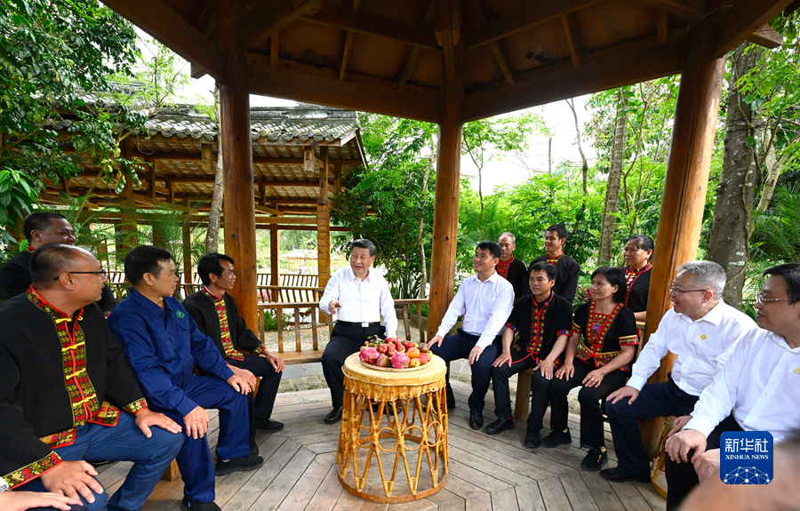 4月11日下午,习近平在五指山市水满乡毛纳村同村民们亲切交流。