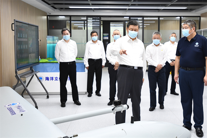 4月10日下午,习近平在中国海洋大学三亚海洋研究院考察。